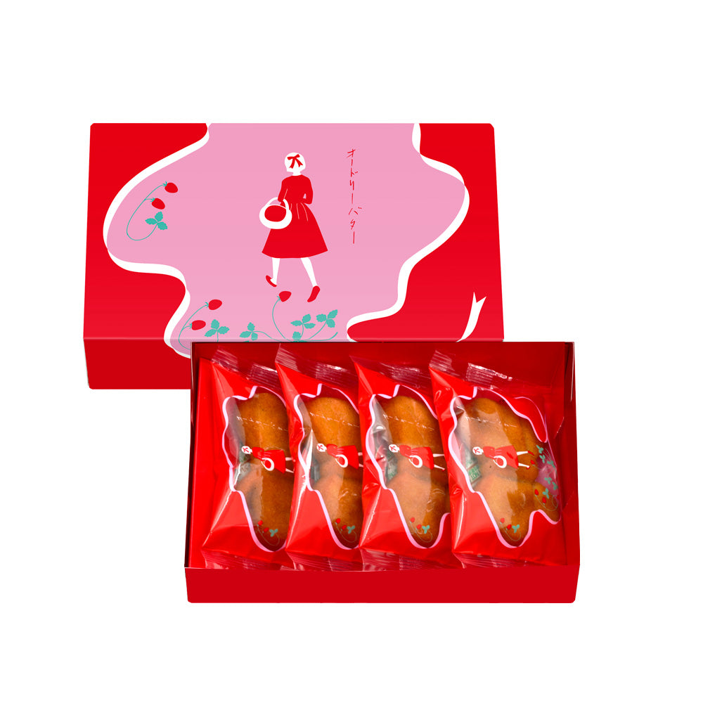 苺がふんわり香るリボン型フィナンシェ「オードリーバター」4個入りです。